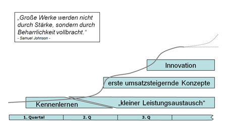Die Erfahrung zeigt Einzelphasen, die bis zum Erreichen innovativer Konzepte durchlaufen werden. Der Ablauf ist bewußt gruppendynamisch angelegt.