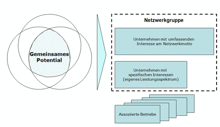Abhängig von der Zielsetzung einer Netzwerkgruppe gibt es Beteiligungen innerhalb oder – als assoziierter Betrieb – außerhalb der Gruppe.
